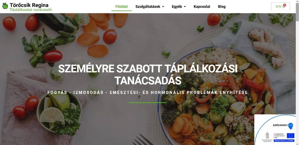 A weblap célja: Törőcsik Regina táplálkozási tanácsadó csomagjainak bemutatása és eladása.