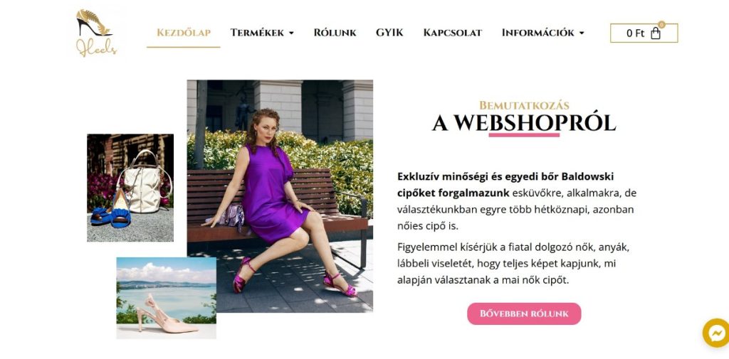 A weboldal célja: A Heels.hu egy női cípőket áruló webshop.
