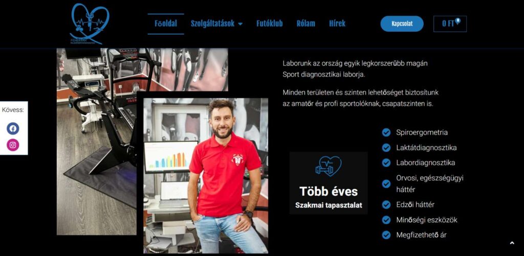 A weblap tartalmából: Értékesítési szöveg, kapcsolatfelvételi űrlap, tréner bemutatkozója.